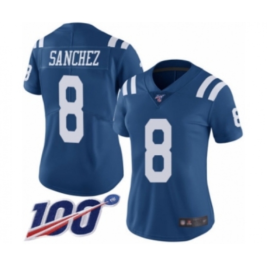 Women's Indianapolis Colts #8 Rigoberto Sanchez Limited Royal Blue Rush Vapor Untouchable 100th Season Football Jersey