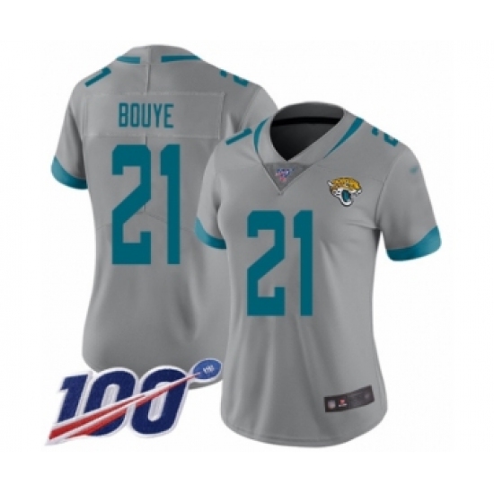 >Women's Jacksonville Jaguars #21 A.J. Bouye Silver Inverted Legend Limited 100th Season Football Jersey