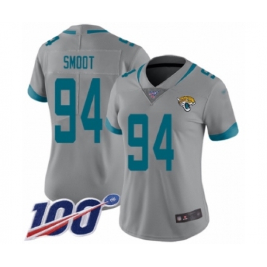 >Women's Jacksonville Jaguars #94 Dawuane Smoot Silver Inverted Legend Limited 100th Season Football Jersey