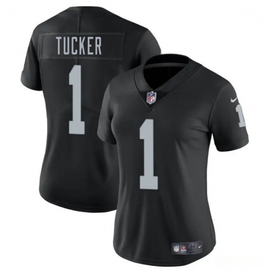 >Women's Las Vegas Raiders #1 Tre Tucker Black 2025 Vapor Football Stitched Jersey(Run Small)