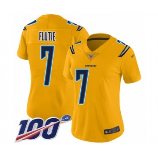 Women's Los Angeles Chargers #7 Doug Flutie Limited Gold Inverted Legend 100th Season Football Jersey