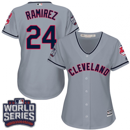 Home>MLB>Cleveland Indians>Manny Ramirez>Women's Majestic Cleveland Indians #24 Manny Ramirez Authentic Grey Road 2016 World Series Bound Cool Base MLB Jersey