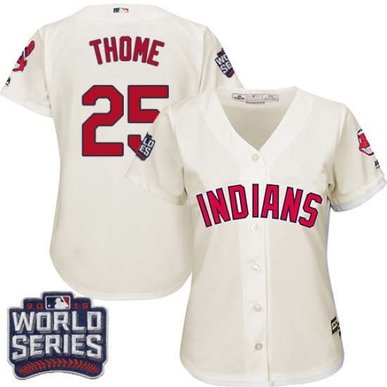 Home>MLB>Cleveland Indians>Jim Thome>Women's Majestic Cleveland Indians #25 Jim Thome Authentic Cream Alternate 2 2016 World Series Bound Cool Base MLB Jersey