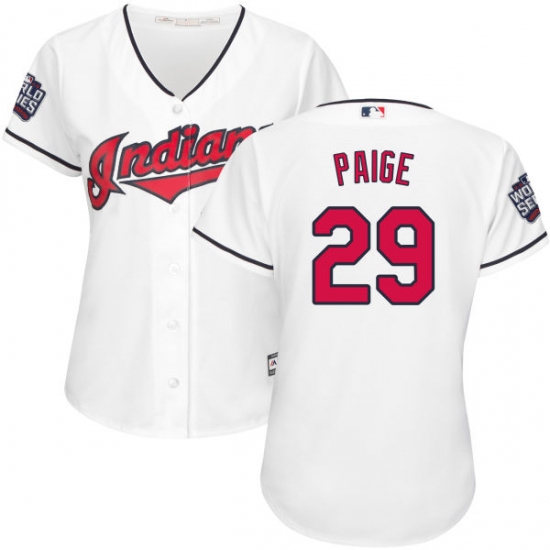 Home>MLB>Cleveland Indians>Satchel Paige>Women's Majestic Cleveland Indians #29 Satchel Paige Authentic White Home 2016 World Series Bound Cool Base MLB Jersey