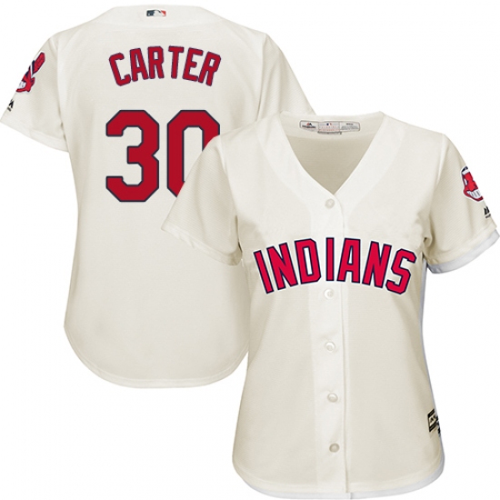 Home>MLB>Cleveland Indians>Joe Carter>Women's Majestic Cleveland Indians #30 Joe Carter Replica Cream Alternate 2 Cool Base MLB Jersey