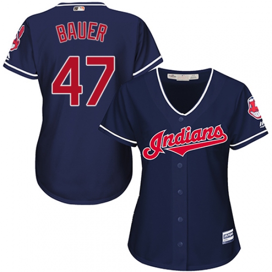 Women's Majestic Cleveland Indians #47 Trevor Bauer Replica Navy Blue Alternate 1 Cool Base MLB Jersey