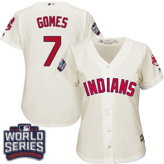 Home>MLB>Cleveland Indians>Yan Gomes>Women's Majestic Cleveland Indians #7 Yan Gomes Authentic Cream Alternate 2 2016 World Series Bound Cool Base MLB Jersey