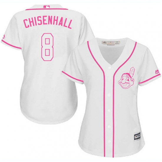 Home>MLB>Cleveland Indians>Lonnie Chisenhall>Women's Majestic Cleveland Indians #8 Lonnie Chisenhall Replica White Fashion Cool Base MLB Jersey