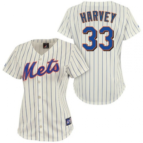 Home>MLB>New York Mets>Matt Harvey>Women's Majestic New York Mets #33 Matt Harvey Replica Cream/Blue Strip MLB Jersey