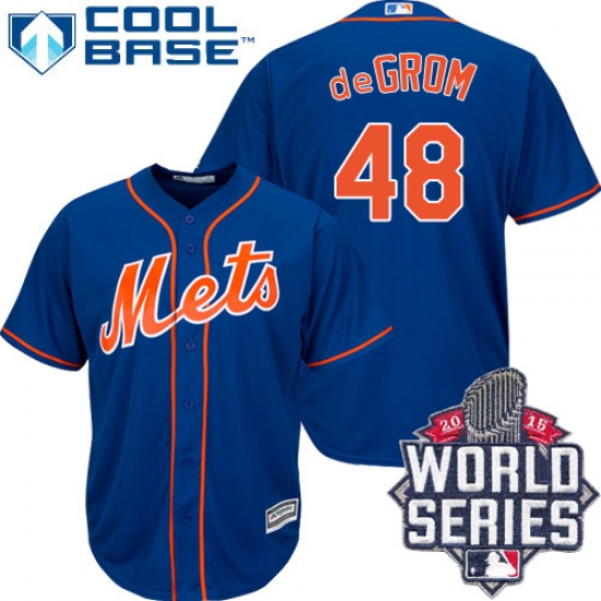 Home>MLB>New York Mets>Jacob deGrom>Women's Majestic New York Mets #48 Jacob deGrom Authentic Blue 2015 World Series MLB Jersey