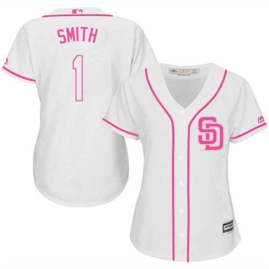 Home>MLB>San Diego Padres>Ozzie Smith>Women's Majestic San Diego Padres #1 Ozzie Smith Authentic White Fashion Cool Base MLB Jersey