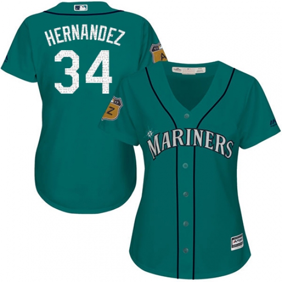 Women's Majestic Seattle Mariners #34 Felix Hernandez Authentic Aqua 2017 Spring Training Cool Base MLB Jersey