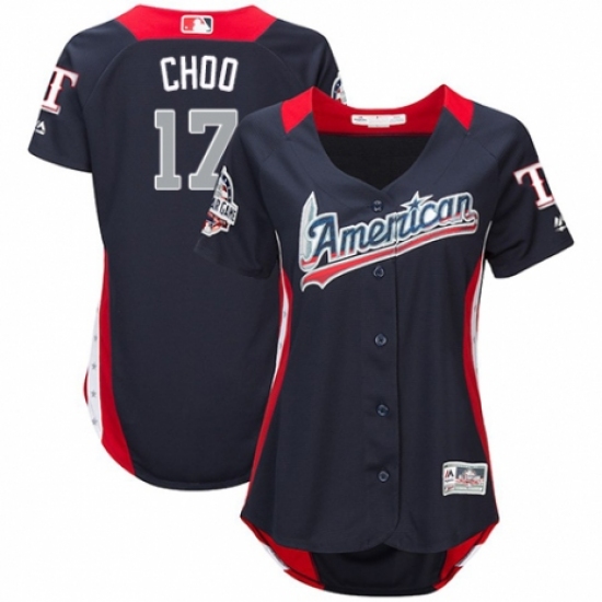 >Women's Majestic Texas Rangers #17 Shin-Soo Choo Game Navy Blue American League 2018 MLB All-Star MLB Jersey