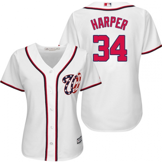 Home>MLB>Washington Nationals>Bryce Harper>Women's Majestic Washington Nationals #34 Bryce Harper Replica White MLB Jersey