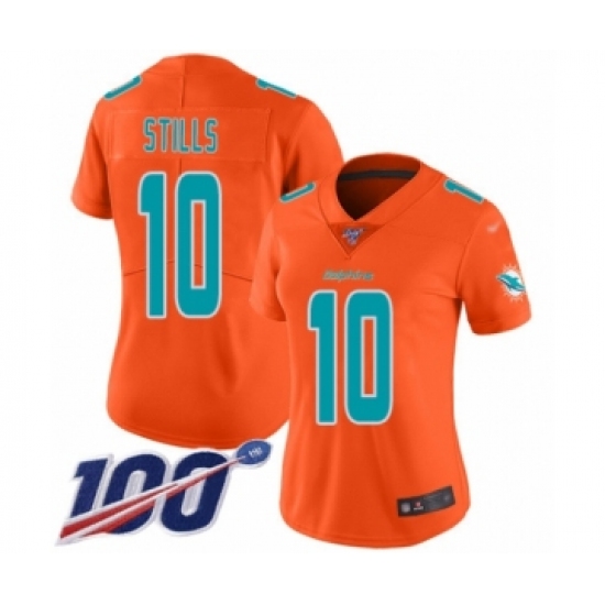 Women's Miami Dolphins #10 Kenny Stills Limited Orange Inverted Legend 100th Season Football Jersey