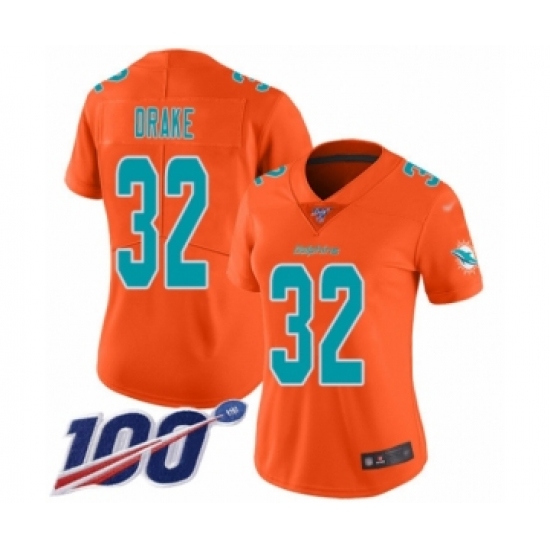 Women's Miami Dolphins #32 Kenyan Drake Limited Orange Inverted Legend 100th Season Football Jersey