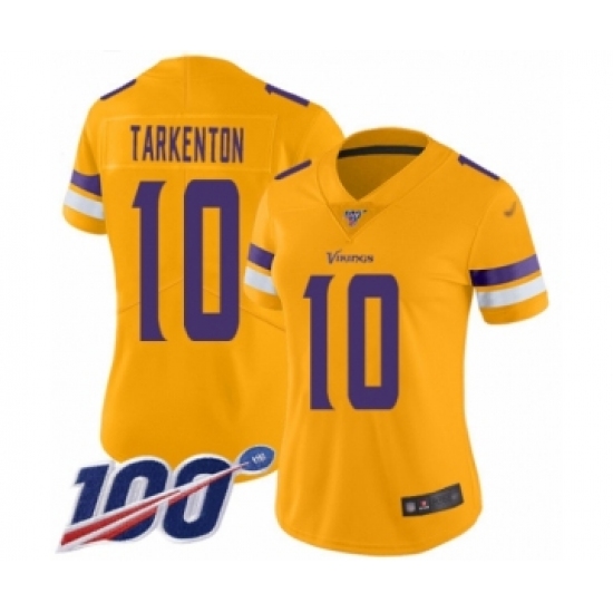 >Women's Minnesota Vikings #10 Fran Tarkenton Limited Gold Inverted Legend 100th Season Football Jersey