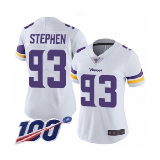 >Women's Minnesota Vikings #93 Shamar Stephen White Vapor Untouchable Limited Player 100th Season Football Jersey