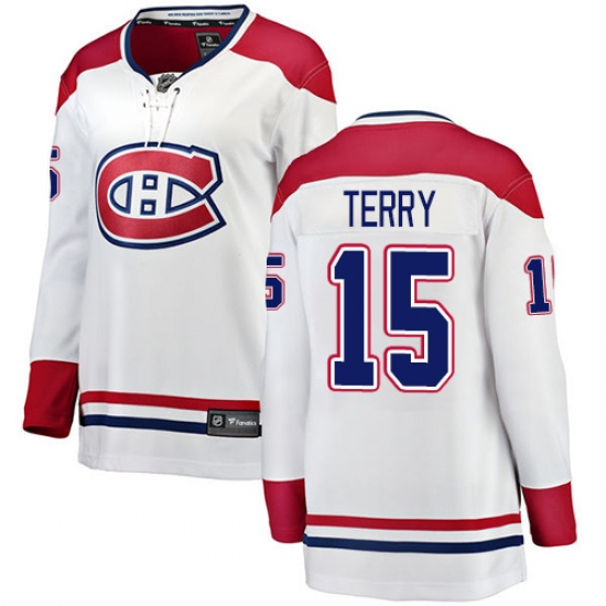 Home>NHL>Montreal Canadiens>Chris Terry>Women's Montreal Canadiens #15 Chris Terry Authentic White Away Fanatics Branded Breakaway NHL Jersey