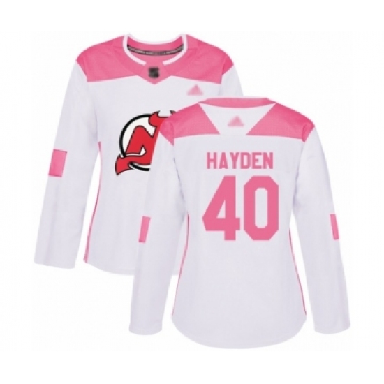 >Women's New Jersey Devils #40 John Hayden Authentic White Pink Fashion Hockey Jersey