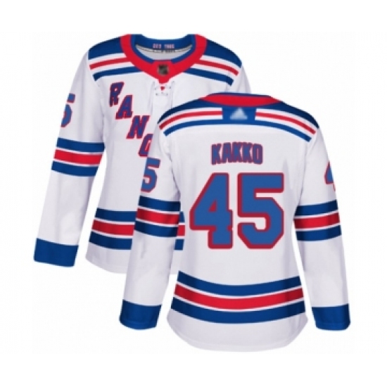 >Women's New York Rangers #45 Kaapo Kakko Authentic White Away Hockey Jersey