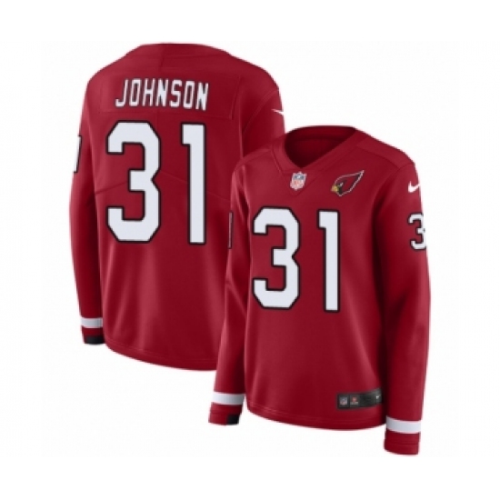 >Women's Nike Arizona Cardinals #31 David Johnson Limited Red Therma Long Sleeve NFL Jersey