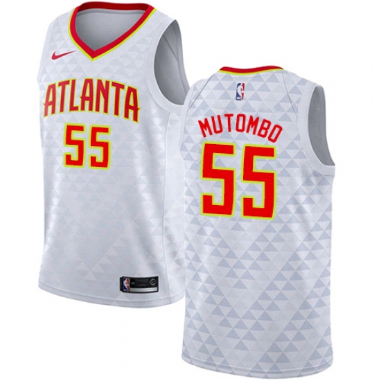 Women's Nike Atlanta Hawks #55 Dikembe Mutombo Authentic White NBA Jersey - Association Edition