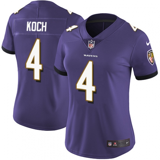Women's Nike Baltimore Ravens #4 Sam Koch Purple Team Color Vapor Untouchable Limited Player NFL Jersey