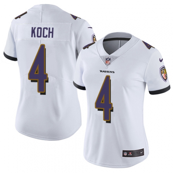Women's Nike Baltimore Ravens #4 Sam Koch White Vapor Untouchable Limited Player NFL Jersey
