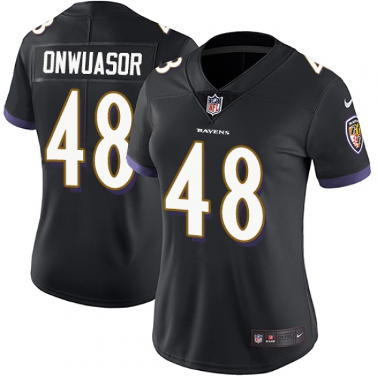 Women's Nike Baltimore Ravens #48 Patrick Onwuasor Black Alternate Vapor Untouchable Limited Player NFL Jersey