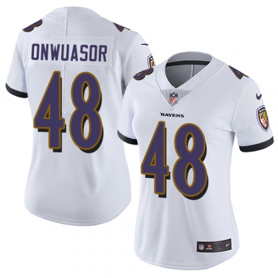Women's Nike Baltimore Ravens #48 Patrick Onwuasor White Vapor Untouchable Limited Player NFL Jersey