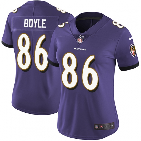 Women's Nike Baltimore Ravens #86 Nick Boyle Purple Team Color Vapor Untouchable Limited Player NFL Jersey