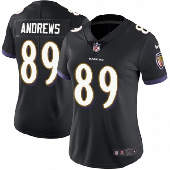 >Women's Nike Baltimore Ravens #89 Mark Andrews Black Alternate Vapor Untouchable Limited Player NFL Jersey