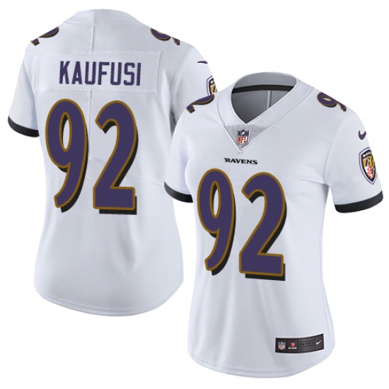 Women's Nike Baltimore Ravens #92 Bronson Kaufusi White Vapor Untouchable Limited Player NFL Jersey