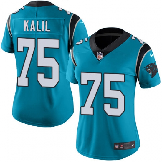 Women's Nike Carolina Panthers #75 Matt Kalil Blue Alternate Vapor Untouchable Limited Player NFL Jersey