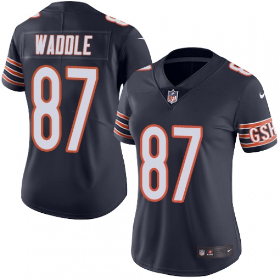 Home>NFL>Chicago Bears>Tom Waddle>Women's Nike Chicago Bears #87 Tom Waddle Navy Blue Team Color Vapor Untouchable Limited Player NFL Jersey