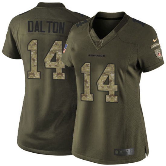 Women's Nike Cincinnati Bengals #14 Andy Dalton Elite Green Salute to Service NFL Jersey