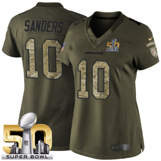 Home>NFL>Denver Broncos>Emmanuel Sanders>Women's Nike Denver Broncos #10 Emmanuel Sanders Limited Green Salute to Service Super Bowl 50 Bound NFL Jersey