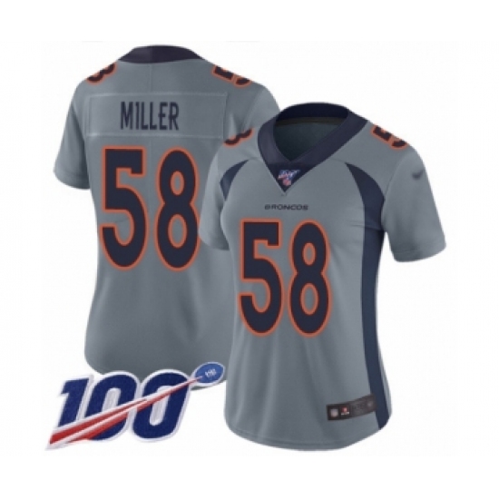 Women's Nike Denver Broncos #58 Von Miller Limited Silver Inverted Legend 100th Season NFL Jersey
