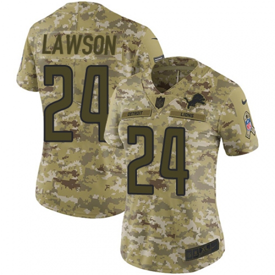 >Women's Nike Detroit Lions #24 Nevin Lawson Limited Camo 2018 Salute to Service NFL Jersey