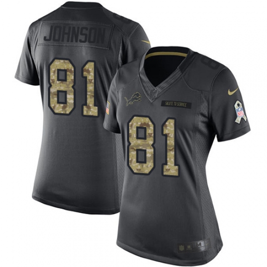 Women's Nike Detroit Lions #81 Calvin Johnson Limited Black 2016 Salute to Service NFL Jersey