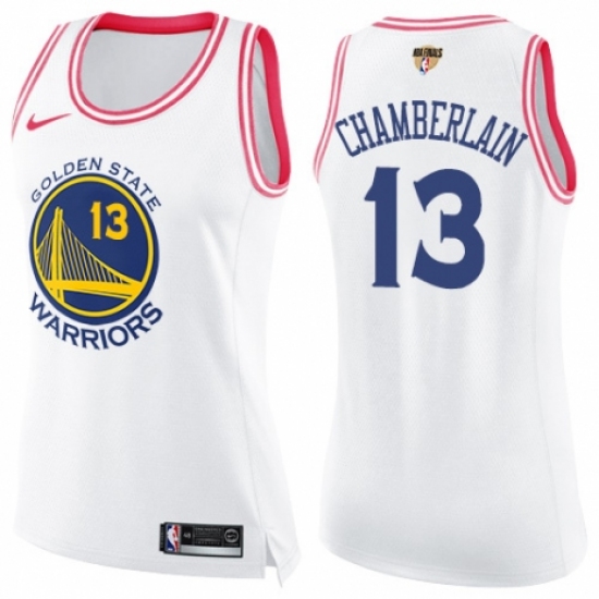 >Women's Nike Golden State Warriors #13 Wilt Chamberlain Swingman White/Pink Fashion 2018 NBA Finals Bound NBA Jersey