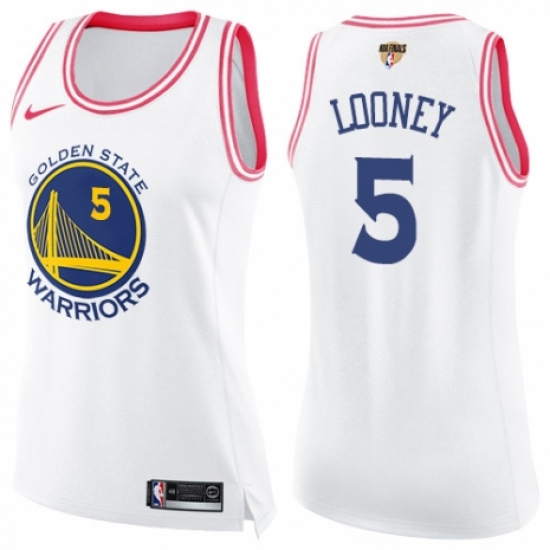 >Women's Nike Golden State Warriors #5 Kevon Looney Swingman White/Pink Fashion 2018 NBA Finals Bound NBA Jersey