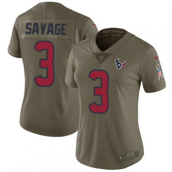 Home>NFL>Houston Texans>Tom Savage>Women's Nike Houston Texans #3 Tom Savage Limited Olive 2017 Salute to Service NFL Jersey