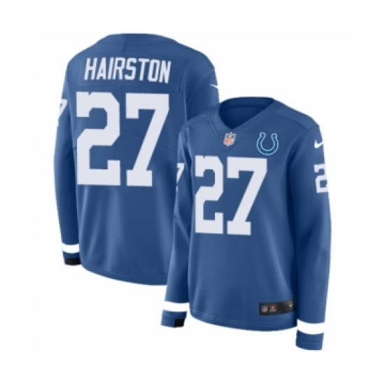 >Women's Nike Indianapolis Colts #27 Nate Hairston Limited Blue Therma Long Sleeve NFL Jersey