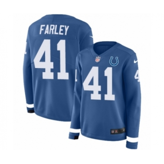 Women's Nike Indianapolis Colts #41 Matthias Farley Limited Blue Therma Long Sleeve NFL Jersey