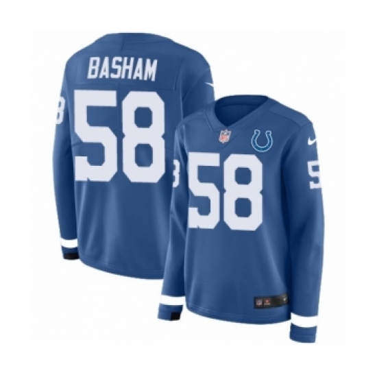 >Women's Nike Indianapolis Colts #58 Tarell Basham Limited Blue Therma Long Sleeve NFL Jersey