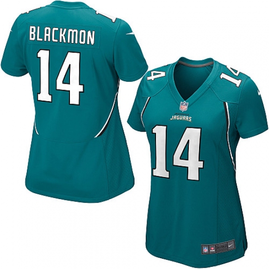 Home>NFL>Jacksonville Jaguars>Justin Blackmon>Women's Nike Jacksonville Jaguars #14 Justin Blackmon Game Teal Green Team Color NFL Jersey