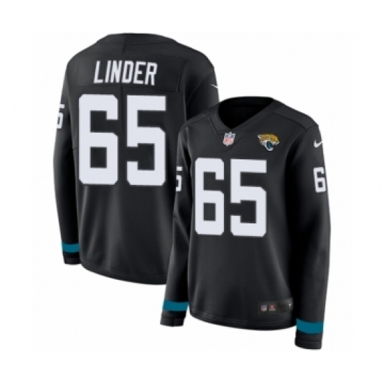 >Women's Nike Jacksonville Jaguars #65 Brandon Linder Limited Black Therma Long Sleeve NFL Jersey