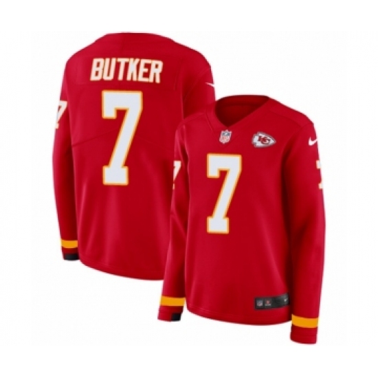 >Women's Nike Kansas City Chiefs #7 Harrison Butker Limited Red Therma Long Sleeve NFL Jersey
